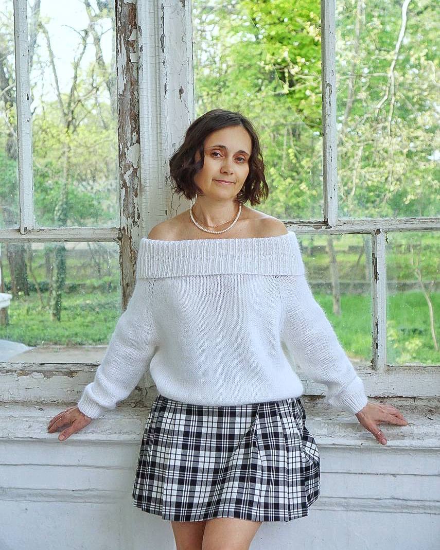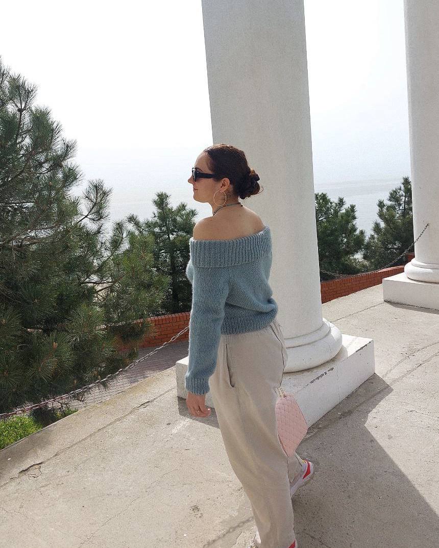 Стильна сучасна модель джемпера з відкритими плечима – класика, що знову набирає популярності.