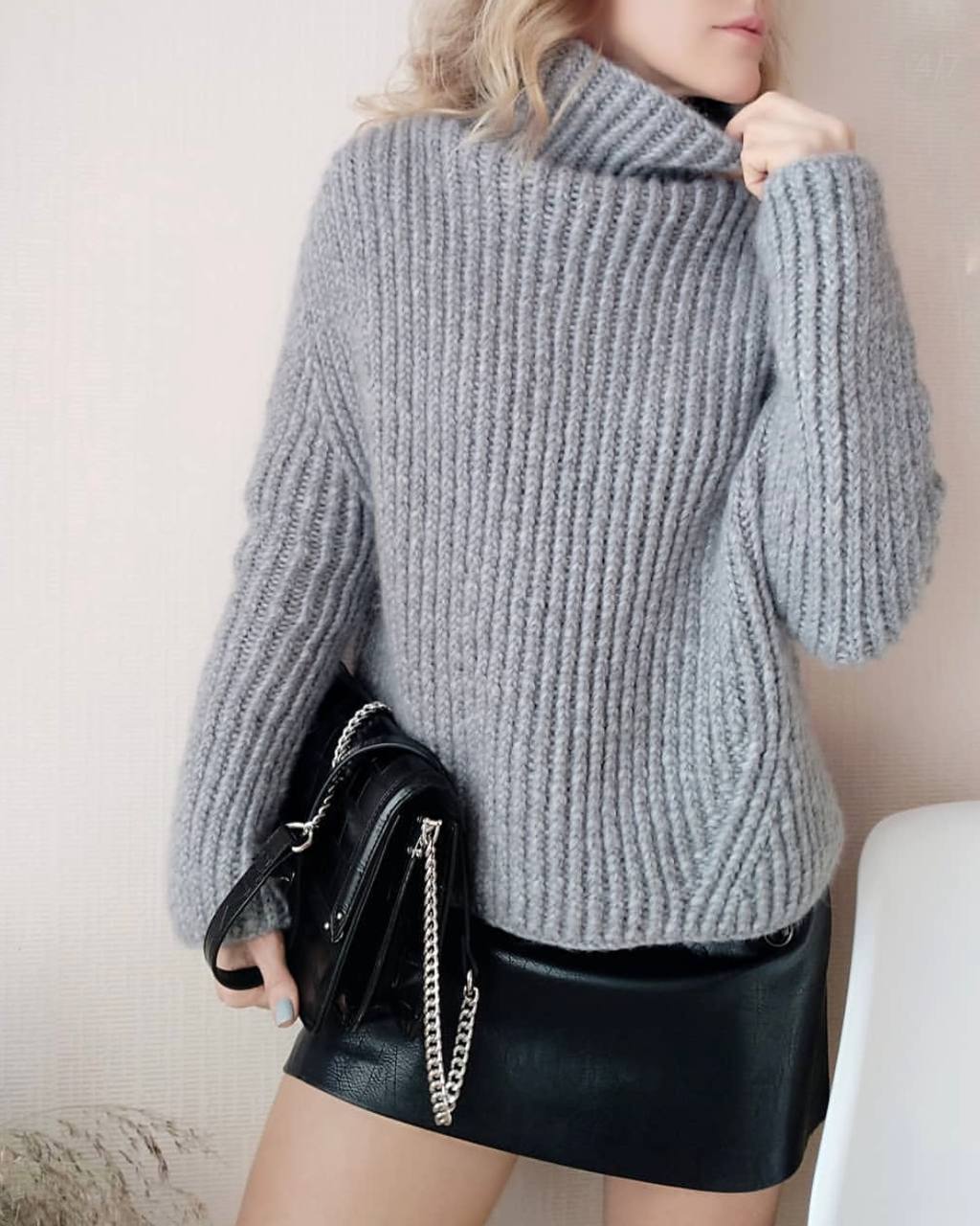 Стильний пухнастий джемпер, який ти зв'яжеш дуже швидко! Два види горловини: класична кругла та з фіксованим відворотом.