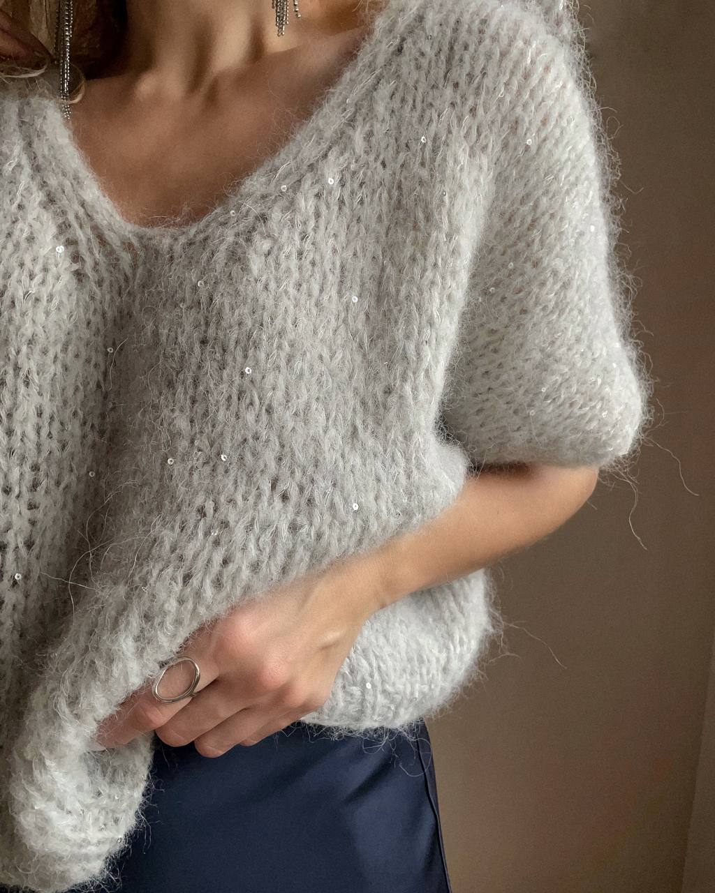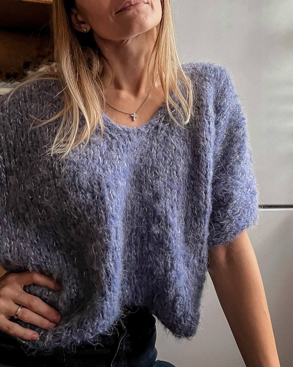 Пухнастий і сяючий топ – святковий настрій вже тут! Цей топ можна носити вирізом як вперед, так і назад, створюючи різні образи.
