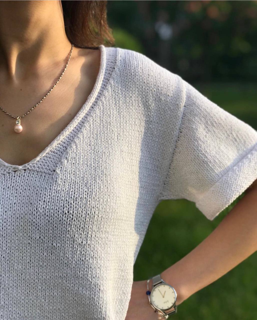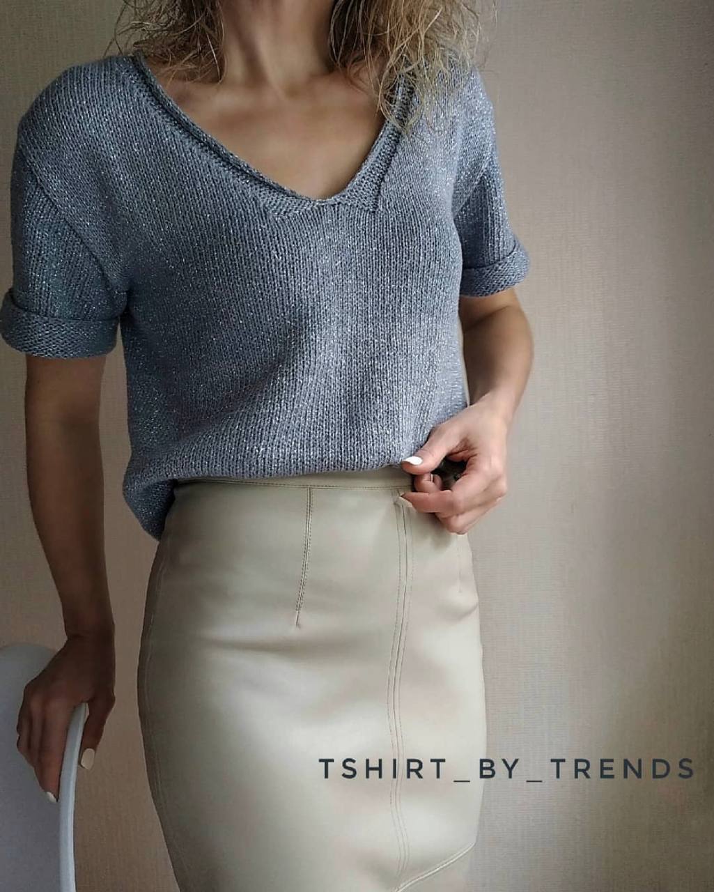 Мінімалістичний дизайн, блискуча фактура пряжі, а також можливість носити виріз вперед і назад – це футболка tshirt_by_trends.